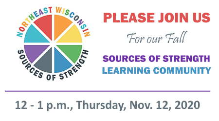 Hello Sources of Strength partners, We hope you are all hanging in there, leaning into your strengths, and staying well during these tumultuous times. We invite you to join us next Thursday, Nov. 12 from noon to 1 p.m. for our fall Sources Learning Community. We realize you all have a lot on your plate, but we hope you can take a break to join us for some sharing, some fun and some tips for planning Sources campaigns in our pandemic environment. Here's the meeting link and password, or click the calendar link of your choice to add it to your calendar. Please share the resources below!We have heard from many of you about your concerns for your students. As the pandemic drags on, we know that stress levels are running high and we are seeing higher rates of anxiety and depression among our youth (and grown ups, too!). We've compiled a list of mental health and basic needs resources below. Please share with your networks. Thank you, Wendy Harris, Project Coordinator Healthy Teen Minds, The N.E.W. Mental Health Connection |